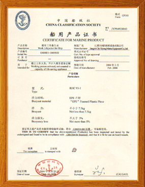 本公司具有完善的計量測試設(shè)備,健全的技術(shù)質(zhì)檢體系。救生圈、救生衣、健全的技術(shù)質(zhì)檢體系。公司主要生產(chǎn)救生圈、救生衣、救生燈具、船用配件等系列產(chǎn)品,產(chǎn)品品種齊全、性能符合1974年SOLAS公約,1996年修正案要求,經(jīng)中國船級社認(rèn)可。